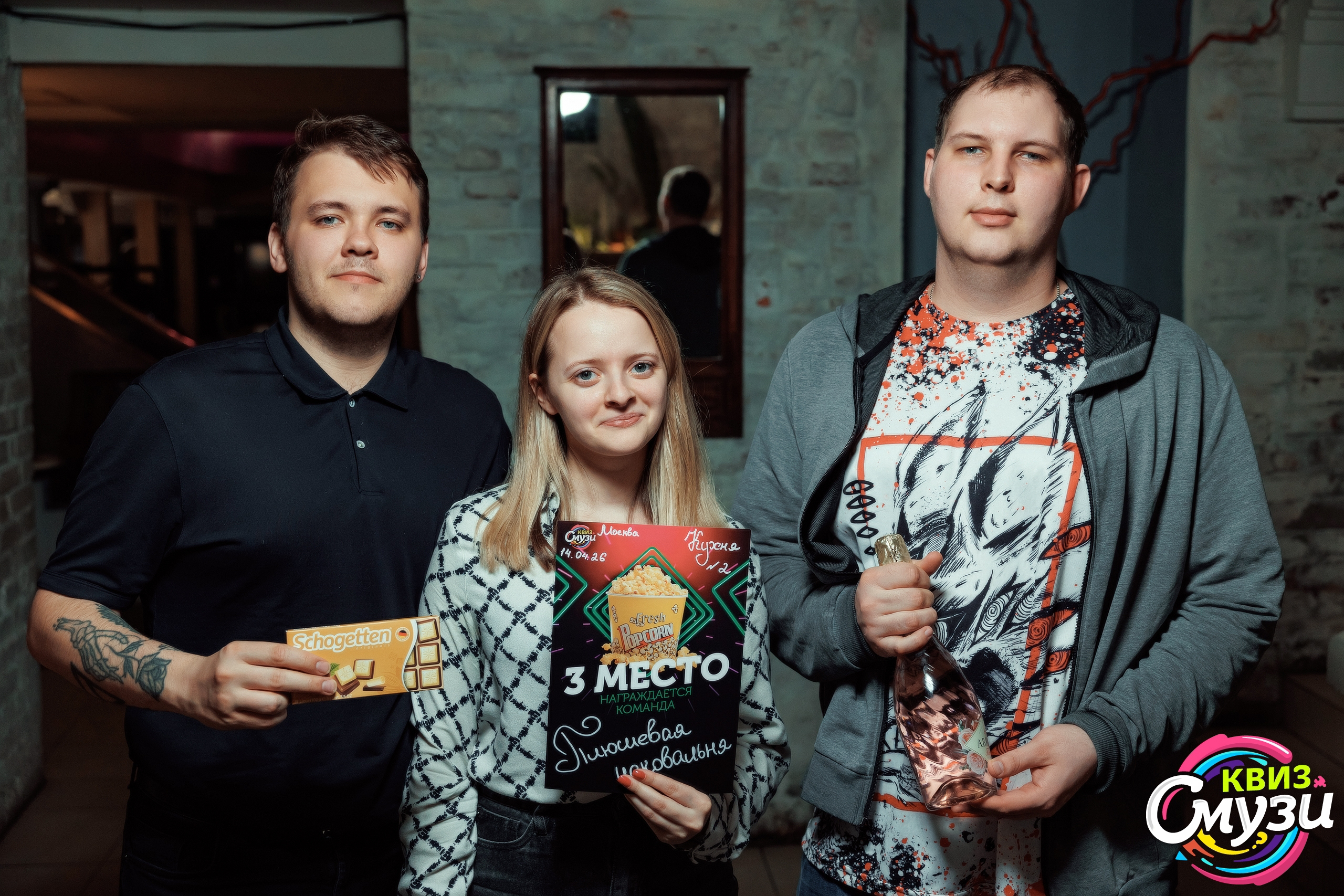 В основном нас интересуют квизы по кино, мультфильмам и сериалам (КМС), музыкальные (УМ, караоке-квиз, ...), обо всём, ГП и некоторые тематические вроде квиза по Сумеркам, по сериалу "Как я встретил вашу маму" и т.д.